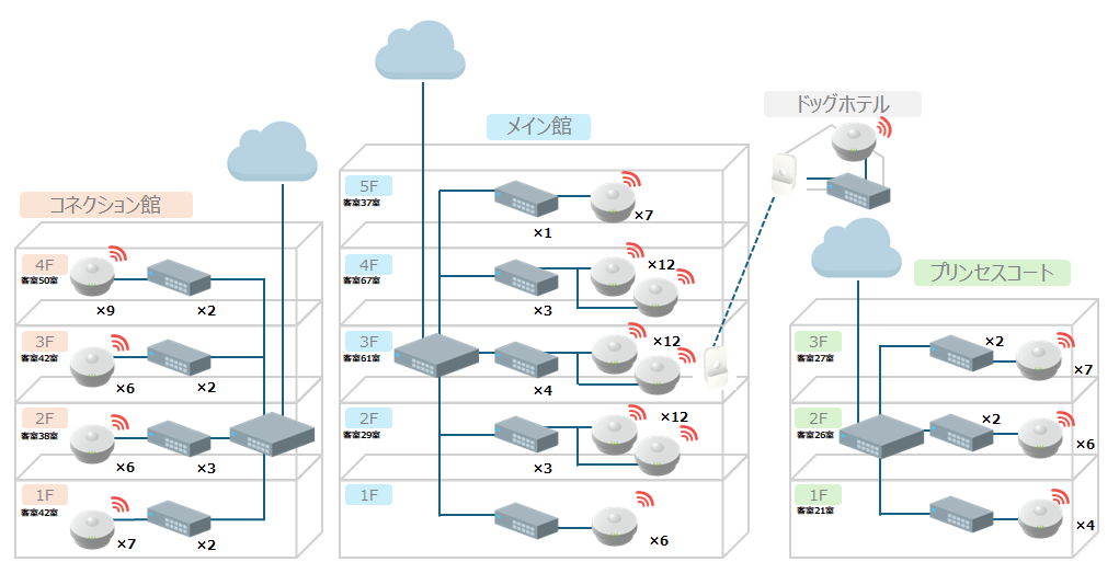 | サービス概要 | 客室を中心とした館内全体のWi-Fi化 |